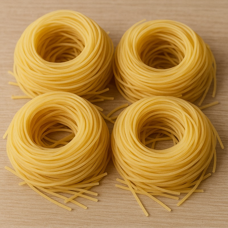 - Tykkelse: Tyndere end spaghetti (ca. 0,85–0,92 mm).
