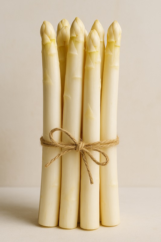 Hvide asparges er en delikatesse, som i modsætning til de grønne asparges dyrkes under jord eller mørk plastdækning, så de ikke udsættes for sollys. Det gør, at de ikke udvikler klorofyl, og derfor forbliver de hvide. De er tykkere, mere milde og en smule sødere i smagen end grønne asparges, og de har en blødere struktur.