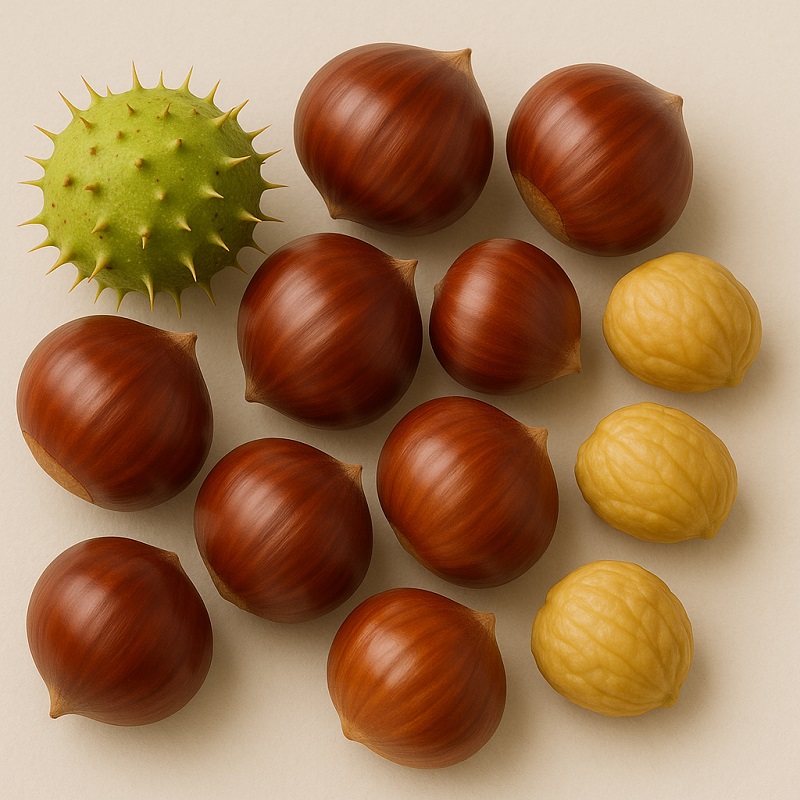 Kastanjer er frugterne fra kastanjetræet (Castanea), der især kendes i Europa, Asien og Nordamerika. De spiselige kastanjer har en glat, brun, skinnende skal og en blød, sød kerne, der kan spises efter tilberedning. Kastanjer bruges ofte i madlavning – især i supper, fyld, bagværk eller ristet som en vinterdelikatesse.