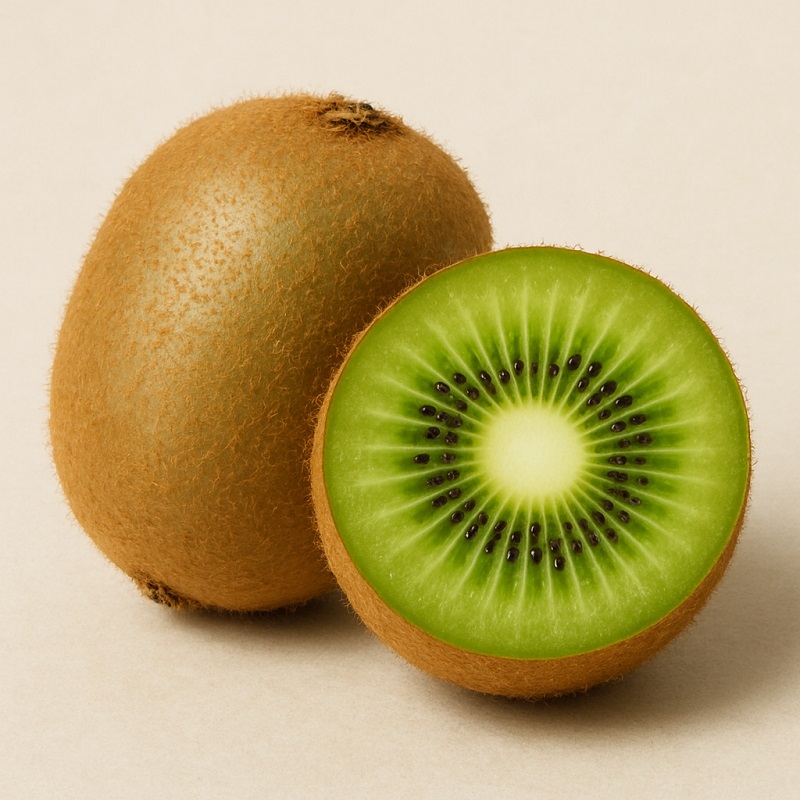 Kiwi er rig på C-vitamin, faktisk blandt de mest vitaminrige frugter. Den indeholder også fibre, vitamin K, folat og antioxidanter. Kiwi er kendt for at styrke immunforsvaret, fremme fordøjelsen og have en gavnlig effekt på blodtryk og kredsløb.